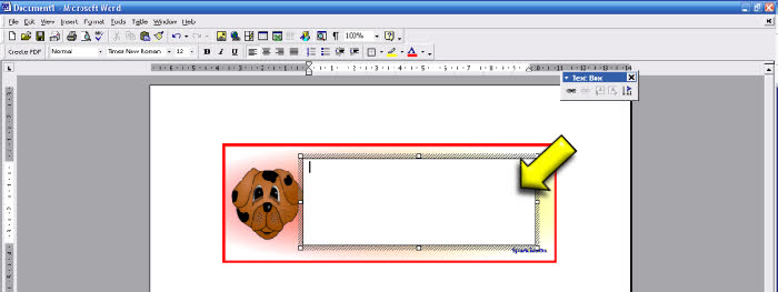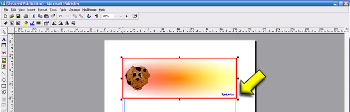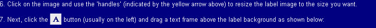 6. Click on the image and use the ‘handles’ (indicated by the yellow arrow above) to resize the label image to the size you want.