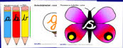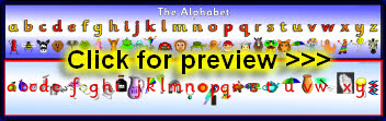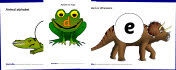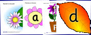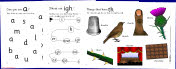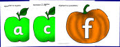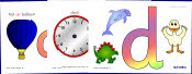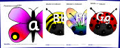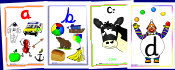 A vertical banner with the lowercase letters of the alphabet with accompanying pictures.