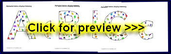 A PDF document with 26 letters of the alphabet (upper and lowercase) filled with coloured alphabet letters. These are great for printing and cutting out for use on displays.