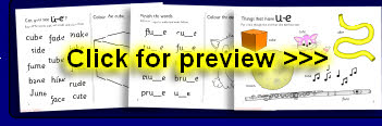 A set of sheets which can be assembled into an A5 folded booklet to give to pupils. It includes activities to aid recognition of the ‘u-e’ sound. Ideal as a homework resource.