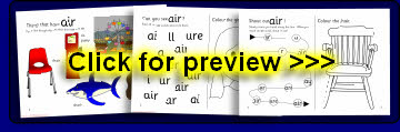 A set of sheets which can be assembled into an A5 folded booklet to give to pupils. It includes activities to aid recognition of the ‘air’ sound. Ideal as a homework resource.
