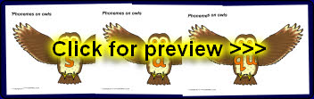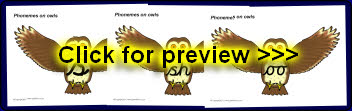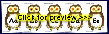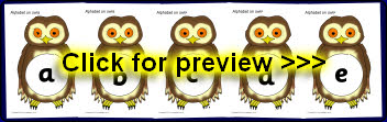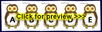 The uppercase and lowercase alphabet letters presented on cartoon owls.