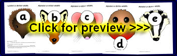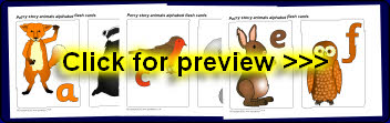 Lowercase alphabet cards with animals that are featured in the Percy the Park Keeper stories.