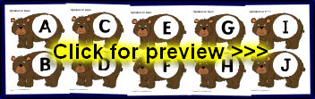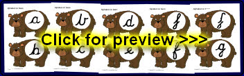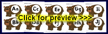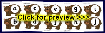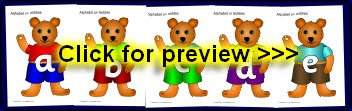 A set of 26 A4-sized bears showing the lowercase letters a-z. Ideal for classroom displays and alphabet lines.