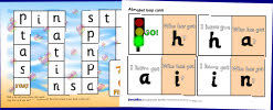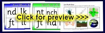 Printable bingo boards and picture cards where children match the pictures to the final blend/consonant cluster.