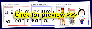 A set of printable bingo boards and cards using the phonemes ow, oi, ear, air, ure and er. The set consists of 4 different phoneme boards and 4 different picture boards as well as picture letter cards. The game can be played by matching pictures to letters, or letters to pictures.