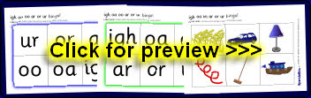 A set of printable bingo boards and cards using the phonemes igh, oa, oo, ar, or and ur. The set consists of 4 different phoneme boards and 4 different picture boards as well as picture letter cards. The game can be played by matching pictures to letters, or letters to pictures.