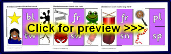 Printable loop cards with initial blends/consonant clusters and matching pictures.