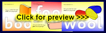 A set of simple printable mats where children make words with the short ‘oo’ sound and related objects from playdough.