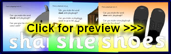 A set of simple printable mats where children make words beginning with ‘sh’ and related objects from playdough.