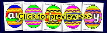 A set of 50 printable colourful Easter egg pictures with phonemes as specified in the DfES ‘Letters and Sounds’ document. Great if laminated for outdoor Easter egg hunts and children could build words using the eggs. Also good for use on classroom displays.