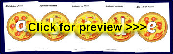 The lowercase alphabet letters presented on pancake images - one per A4 sheet.