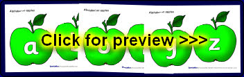 The 26 letters of the alphabet presented on apples. Great for a classroom ‘sound tree’ display.