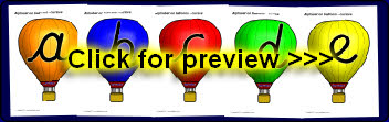 A simple but colourful printable mat that features the alphabet and other digraphs on hot air balloons (in cursive script) in the sky. Print out and laminate.