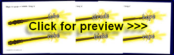 Magic ‘e’ words with the long vowel sound ‘a’ presented on wizard wands.