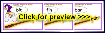 A set of fun posters featuring a wizard saying simple CVC words and his wand adding the magic ‘e’ to make new words.