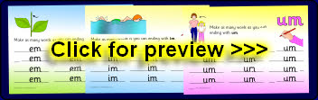 Printable desktop mats that can be laminated for use with dry-wipe pens. Children add initial sounds to make words ending with -m rimes.