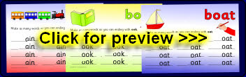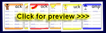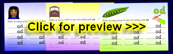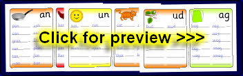 Printable desktop mats that can be laminated for use with dry-wipe pens. Children add initial sounds to make words ending with the various rimes.