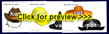 Words with ‘at’ rime on hats (Ref: SB4101)