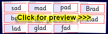 Words with ‘ad’ flash cards (Ref: SB5431)