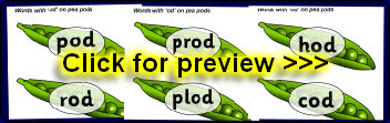Words with the rime ‘od’ presented on pea pods.