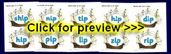 Words with the rime ‘ip’ presented on ships.