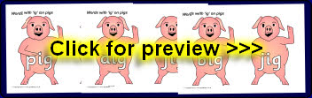 Words with ‘ig’ rime on pigs (Ref: SB4104)
