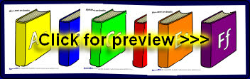 The upper and lowercase alphabet presented on coloured books. Ideal for use in your Library or book area.