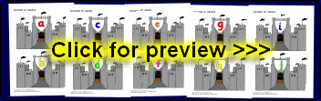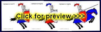 The uppercase and lowercase alphabet letters presented on medieval knights.