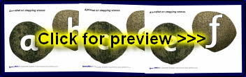 The lowercase alphabet letters a-z presented on stepping stones. Great for word-construction activities where children can make words using the stepping stones to get across a stream.