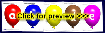 The 26 lowercase alphabet letters presented on coloured party balloons.