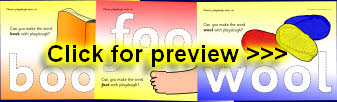 A set of simple printable mats where children make words with the short ‘oo’ sound and related objects from playdough.