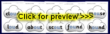 Words with the ‘ou’ phoneme presented on clouds.