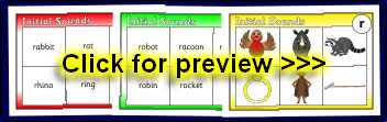 Initial sounds bingo: r (Ref: SB6936) Printable bingo boards and picture cards where children match the pictures to the words featuring the initial sound ‘r’.