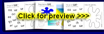 My book about ‘ue’ (/oo/) (Ref: SB2356) A set of sheets which can be assembled into an A5 folded booklet to give to pupils. It includes activities to aid recognition of the ‘ue’ sound. Ideal as a homework resource.