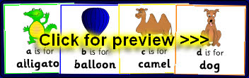 A set of 26 A4-sized posters featuring the letters of the alphabet together with images of items that begin with each alphabet sound. These would make a colourful alphabet line if displayed in your classroom or could be used to aid discussion about each initial sound.