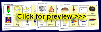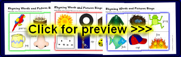A set of printable picture/word bingo boards with accompanying rhyming pictures and words. A fun activity to reinforce rhyme - children take turns to turn over a picture/word card. If it rhymes with something on their board they can place the card over the relevant picture. The first child to fill their whole board shouts ‘Bingo!’.