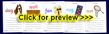 A set of 18 A4 printable sheets which can be printed and laminated for use with whiteboard dry-wipe pens. Each sheet shows a word and picture and children can be asked to write words that rhyme on the lines below.