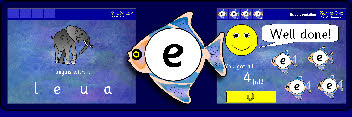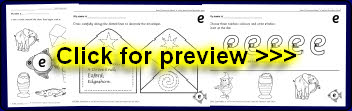 A teacher-controlled presentation for use with the whole-class or smaller groups. As the mouse is clicked, objects beginning with ‘e’ appear along with the accompanying words.
