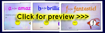 fantastic!’, ‘G is for great!’, ‘P is for perfect!’, ‘W is for wow!’ etc...