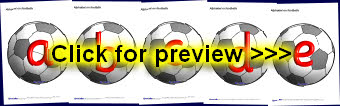 A simple set of A4-size printable footballs featuring the lowercase alphabet letters a-z.