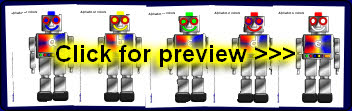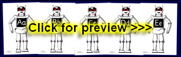 The 26 lowercase alphabet letters presented on fun toy robots.