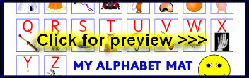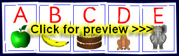 A set of A4-sized printable posters showing uppercase letters A-Z together with a picture for each initial sound.