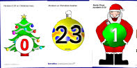 The uppercase alphabet presented with fun Santa characters holding baubles.
