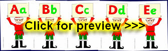 Santa’s Elves showing the alphabet in upper and lowercase.