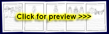 A set of simple printable sheets featuring images from the story of Cinderella for children to colour along with writing lines for story-related writing.