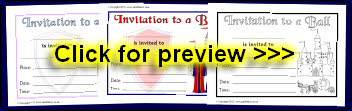Printable invitation to a ball writing frames. An ideal accompaniment to work on the story of Cinderella. Colour and black and white.