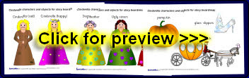 A set of printable cut-out characters and objects for use when retelling the story of Cinderella. These are ideal for laminating and using on story boards or story mats to encourage oral retelling of the story.
