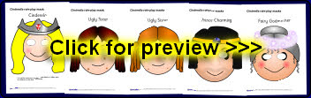 A set of printable cut-out masks for role-playing the story of Cinderella. 11 story characters are included - simply cut out the eye-holes, laminate and attach to a stick for children’s role-play or to retell the story.