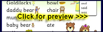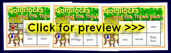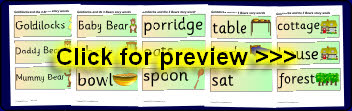 A set of printable word and picture cards linked to the story of Goldilocks.